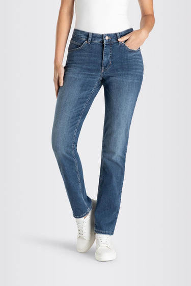 OBS! Fjernlager. Levering kan blive forlænget med 5-7 dage, hvis varen ikke findes i vores butik lige nu.Smarte jeans fra Mac med et straight-leg snit, en feminin pasform og klassiske lommer.Bukserne har også en flot blå vask og en dejlig kvalitet.