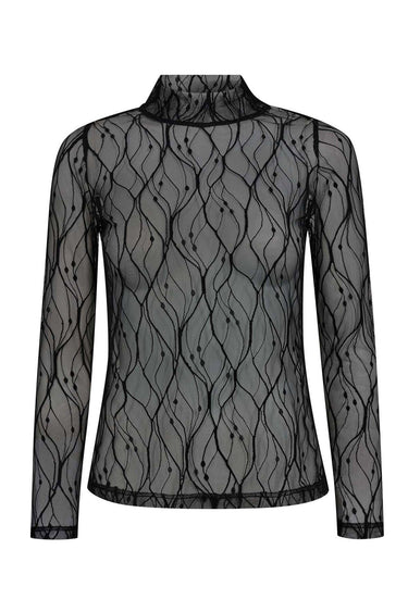 OBS! Fjernlager. Levering kan blive forlænget med 2-3 dage, hvis varen ikke findes i vores butik lige nu.Smart mesh top fra Co'couture med lange ærmer, høj hals og et super fint mønster.