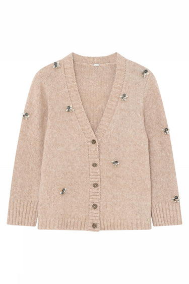 OBS! Fjernlager. Levering kan blive forlænget med 2-3 dage, hvis varen ikke findes i vores butik lige nu.Den fineste strik fra Gustav med lange ærmer, dyb v-udskæring i halsen og små knapper langs fronten.Strikken er også detaljeret med skønne sten.