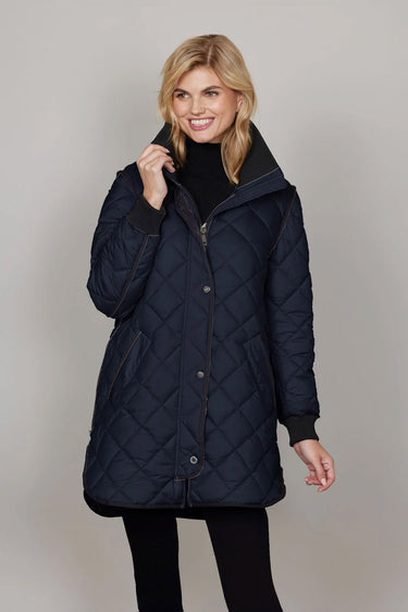 OBS! Fjernlager. Levering kan blive forlænget med 2-3 dage, hvis varen ikke findes i vores butik lige nu.Super fin quiltet jakke fra Junge der kombinerer stilfuldt design med bæredygtige materialer og funktionelle detaljer.Vigtige funktioner inkluderer lynlåslukning foran med trykknapper, lange lynlåssprækker i sidesømmene for øget bevægelsesfrihed, og paspellommer med blødt, varmt foer til sikker opbevaring.
