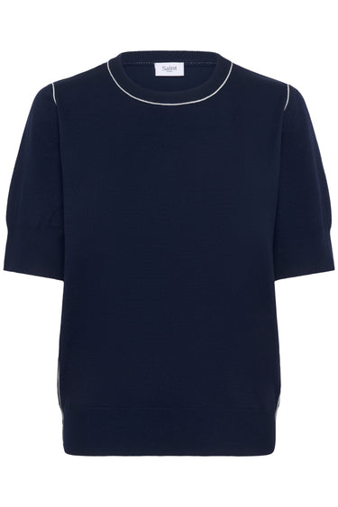 OBS! Fjernlager. Levering kan blive forlænget med 2-3 dage, hvis varen ikke findes i vores butik lige nu.Sød strik fra Saint Tropez med korte ærmer, rund hals og en fin afslappet silhuet.