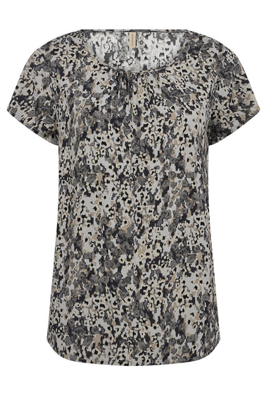 Flot bluse fra Soyaconcept med korte ærmer, rund hals og en dejlig let kvalitet.