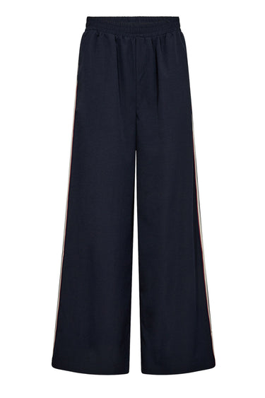 OBS! Fjernlager. Levering kan blive forlænget med 2-3 dage, hvis varen ikke findes i vores butik lige nu.Super lækre bukser fra Co'couture med en bred elastikkant i taljen, vidde i benene og striber langs siden der giver dem et sporty touch.