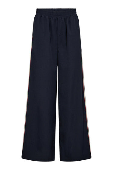 OBS! Fjernlager. Levering kan blive forlænget med 2-3 dage, hvis varen ikke findes i vores butik lige nu.Super lækre bukser fra Co'couture med en bred elastikkant i taljen, vidde i benene og striber langs siden der giver dem et sporty touch.