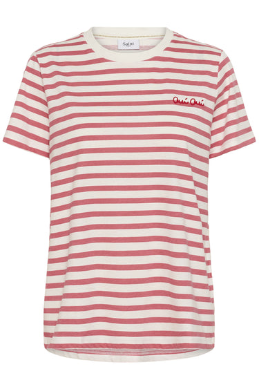 OBS! Fjernlager. Levering kan blive forlænget med 2-3 dage, hvis varen ikke findes i vores butik lige nu.Klassisk tee fra Saint Tropez med korte ærmer, rund hals og et fint stribet mønster.