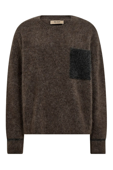 Lækker og blød strik fra Mos Mosh med lange ærmer, rund hals og en fin lomme på brystet.Strikken har også en smart kvalitet og en dejlig afslappet silhuet.