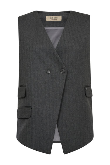 Denne herretøjsinspirerede dobbeltradede vest fra Mos Mosh er lavet af blød sildebensflannel og designet i en oversized silhuet for et moderne, struktureret look.