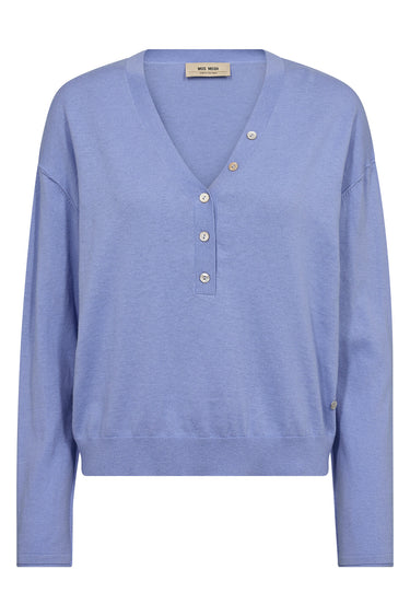 - Blød og lækker strik fra Mos Mosh med lange ærmer, v-udskæring med små knapdetaljer i halsen og en afslappet silhuet.