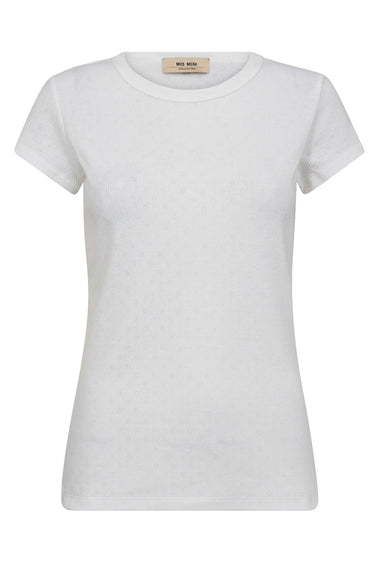 Enkel tee fra Mos Mosh med rund halsudskæring, korte ærmer og en lækker bomuldskvalitet.