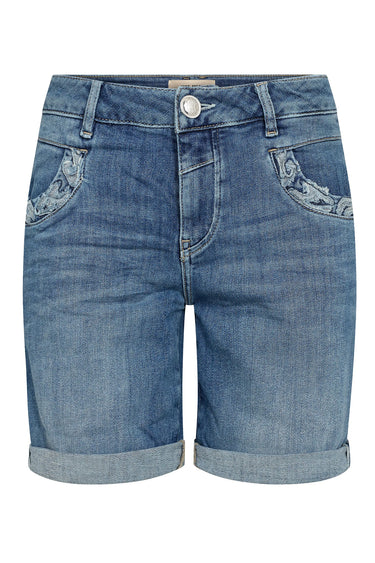 - Smarte denim shorts fra Mos Mosh med en mid-rise talje, fine detaljer omkring lommerne og et lille opsmøg i bunden af benene.