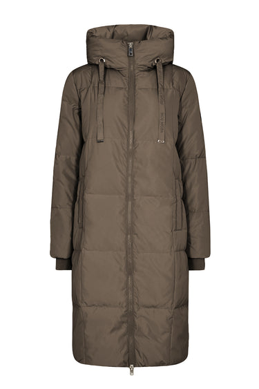 Dejlig varm lang dunjakke fra Mos Mosh. Jakken har en lækker lige pasform, lukkes med kraftig dobbelt lynlås, den har to lommer på fronten og en skøn hætte med snøre.