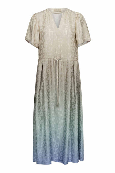 - Elegant og feminin kjole fra Mos Mosh i en afslappet pasform med korte ærmer, flatterende V-hals og fine skulderplisseringer. Den har et flot gradueret jacquard-print i flere farver, og det justerbare bindebælte i taljen gør kjolen alsidig, da du både kan vælge at fremhæve din talje eller lade kjolen hænge løst