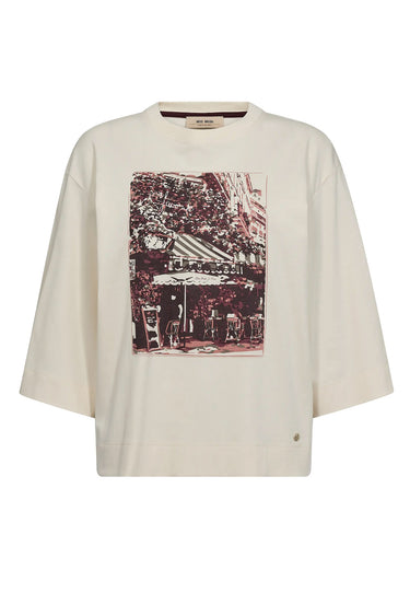 Flot tee fra Mos Mosh med ½ lange ærmer, rund hals og et cool grafisk print på brystet.