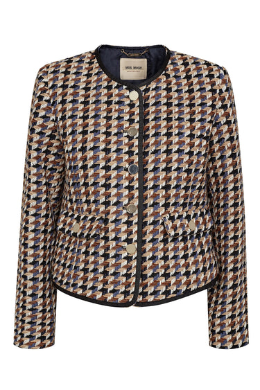 OBS! Fjernlager. Levering kan blive forlænget med 2-3 dage, hvis varen ikke findes i vores butik lige nu.Smuk jakke fra Mos Mosh med lange ærmer, rund hals og den flotteste mønstret kvalitet.Jakken har også lange ærmer, lommeflapper i siderne og knaplukning foran.