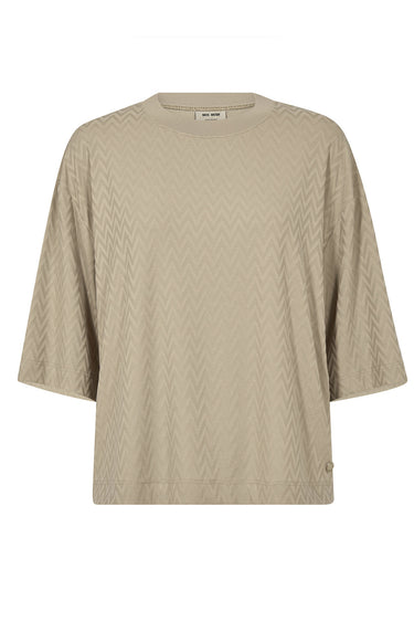 Flot tee fra Mos Mosh med ½ lange ærmer, rund hals og en smuk jacquard kvalitet.