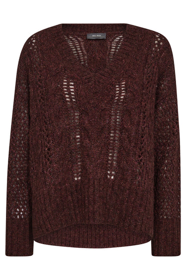 MMWelma Cable VNeck Knit Rum Raisin
