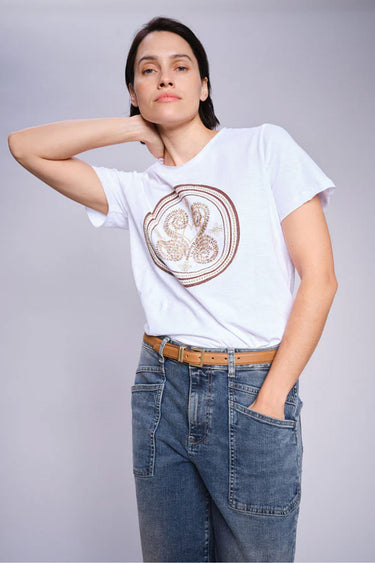 - Model: Mmzano O-Ss Embroidery Tee Toppe & T-Shirts 168100 White