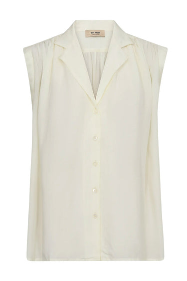 Elegant og enkel top fra Mos Mosh med en fin krave i halsen og knaplukning langs fronten.