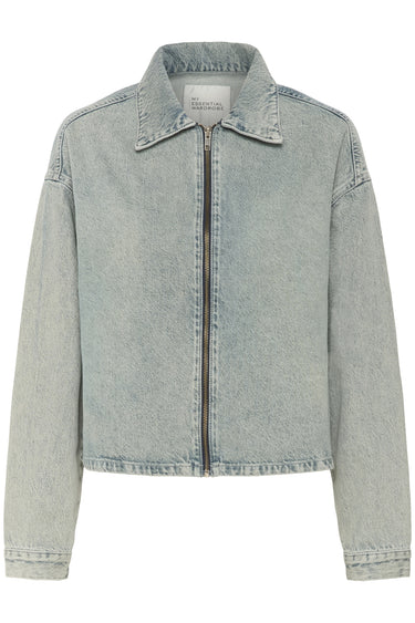 OBS! Fjernlager. Levering kan blive forlænget med 2-3 dage, hvis varen ikke findes i vores butik lige nu.Smart boxy denim jakke fra My Essential Wardrobe med lange ærmer, spids krave i halsen og lynlåslukning langs fronten.