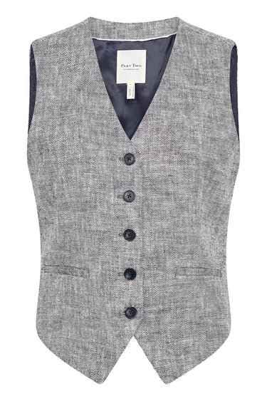 OBS! Fjernlager. Levering kan blive forlænget med 2-3 dage, hvis varen ikke findes i vores butik lige nu.Smart vest fra Part Two med v-udskæring i halsen, fine knapper langs fronten og en super lækker kvalitet.