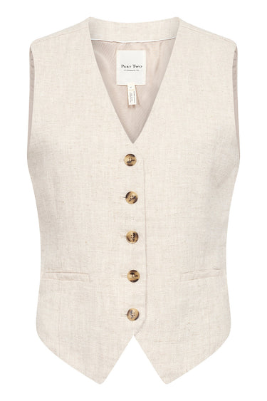 OBS! Fjernlager. Levering kan blive forlænget med 2-3 dage, hvis varen ikke findes i vores butik lige nu.Smart vest fra Part Two med v-udskæring i halsen, fine knapper langs fronten og en super lækker kvalitet.