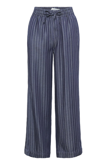 OBS! Fjernlager. Levering kan blive forlænget med 2-3 dage, hvis varen ikke findes i vores butik lige nu.Lækre bukser fra InWear med en bred elastikkant og bindesnor i taljen, vidde i benene og et fint stribet print.