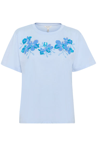 OBS! Fjernlager. Levering kan blive forlænget med 2-3 dage, hvis varen ikke findes i vores butik lige nu.Smart tee fra Part Two med korte ærmer, rund hals og et fint motiv med perler og pailletter på brystet.