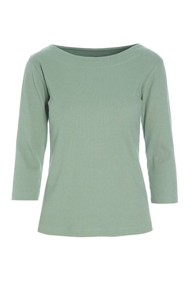 Naibu rib bluse med 3/4 ærme SAGE GREEN 25640795085