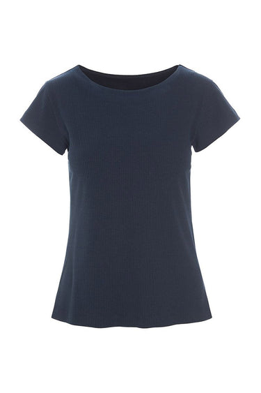 OBS! Fjernlager. Levering kan blive forlænget med 2-3 dage, hvis varen ikke findes i vores butik lige nu.Ribstrikket t-shirt fra Bitte Kai Rand i blød jersey-kvalitet med økologisk bomuld og tilsat stretch, som får pasformen til at holde sig flot. T-shirten har et enkelt udtryk, og den er oplagt at bruge til et lag-på-lag-look under en skjorte eller en transparent overdel.