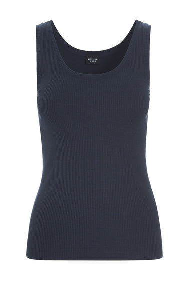 - OBS! Fjernlager. Levering kan blive forlænget med 2-3 dage, hvis varen ikke findes i vores butik lige nu.Ribstrikket tanktop fra Bitte Kai Rand i blød jersey-kvalitet med økologisk bomuld og tilsat stretch, som får pasformen til at holde sig flot. Tanktoppen har et enkelt udtryk, og den er oplagt at bruge til et lag-på-lag-look under en skjorte eller en transparent overdel.