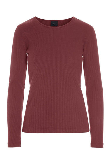 Naibu rib langærmet bluse Maroon 25640795342