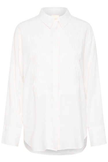- OBS! Fjernlager. Levering kan blive forlænget med 2-3 dage, hvis varen ikke findes i vores butik lige nu.Smart skjortebluse fra Part Two med lange ærmer, krave i halsen og super fine detaljer over brystet.