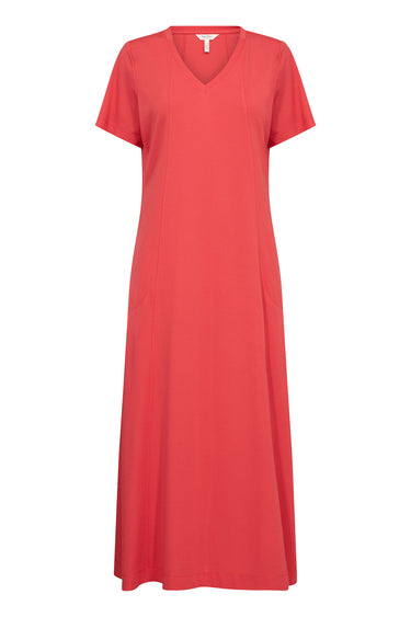 OBS! Fjernlager. Levering kan blive forlænget med 2-3 dage, hvis varen ikke findes i vores butik lige nu.Enkel kjole fra Part Two med korte ærmer, v-udskæring i halsen og et feminint snit.
