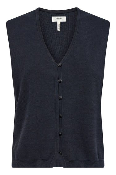 - OBS! Fjernlager. Levering kan blive forlænget med 2-3 dage, hvis varen ikke findes i vores butik lige nu.Fin enkel strik fra Part Two med v-udskæring i halsen og små knapper langs fronten.