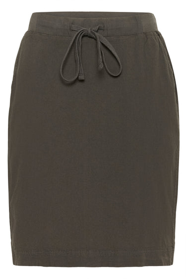 - OBS! Fjernlager. Levering kan blive forlænget med 2-3 dage, hvis varen ikke findes i vores butik lige nu.Smart nederdel fra Kaffe med en bred elastikkant og bindesnor i taljen.