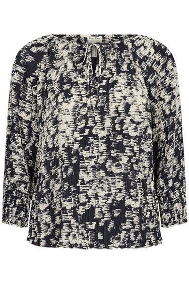 OBS! Fjernlager. Levering kan blive forlænget med 2-3 dage, hvis varen ikke findes i vores butik lige nu.Fin bluse fra Part Two med ¾ lange ærmer, bådudskæring med bindesnor i halsen og et smart print.