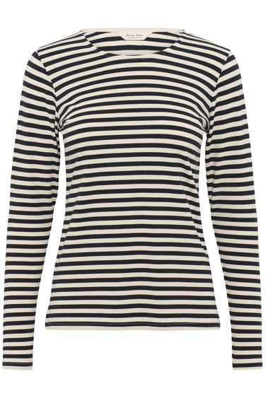 OBS! Fjernlager. Levering kan blive forlænget med 2-3 dage, hvis varen ikke findes i vores butik lige nu.Fin enkel langærmet tee fra Part Two med rund hals og klassiske striber.