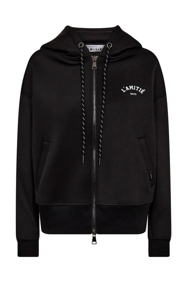 OBS! Fjernlager. Levering kan blive forlænget med 2-3 dage, hvis varen ikke findes i vores butik lige nu.Smart hoodie fra Haute L'Amitié med lange ærmer, justerbar hætte og lynlåslukning langs fronten.