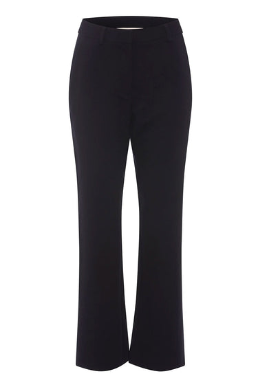 - OBS! Fjernlager. Levering kan blive forlænget med 2-3 dage, hvis varen ikke findes i vores butik lige nu.Smarte bukser fra Rue de Femme der er designet med brede ben og præcise pressefolder både foran og bagpå, som giver en skarp og professionel profil. Disse bukser har en fast taljebånd foran og et elastisk bånd bagpå, hvilket sikrer en behagelig og justerbar pasform. Bukserne er fuldlængde og fremstår med skrå forlommer og enkelte paspolerede baglommer, som kombinerer stil med funktionalitet.