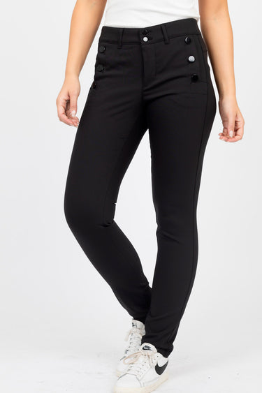 OBS! Fjernlager. Levering kan blive forlænget med 1-2 dage, hvis varen ikke findes i vores butik lige nu.Smarte og velsiddende bukser fra 2-Biz i sort. 2-Biz har med Karcemona buksen opnået stor succes og mange kvinder er rigtig glade for denne model og pasform, som nu er kommet i denne lidt mere elegante Nicky udgave. Bukserne har nogle fine detaljer ved lommerne via tre søde blanke knapper. Stylen lukkes med to knapper og lynlås.