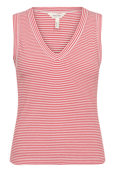 - OBS! Fjernlager. Levering kan blive forlænget med 2-3 dage, hvis varen ikke findes i vores butik lige nu.Fin top fra Part Two med v-udskæring i halsen og et klassisk stribet mønster.