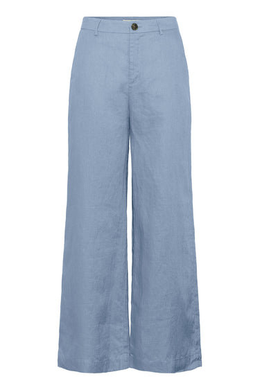 OBS! Fjernlager. Levering kan blive forlænget med 2-3 dage, hvis varen ikke findes i vores butik lige nu.Lækre hør bukser fra Part Two med vidde i benene, mid-rise talje og en dejlig let kvalitet.