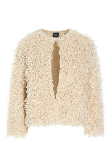 OBS! Fjernlager. Levering kan blive forlænget med 2-3 dage, hvis varen ikke findes i vores butik lige nu.En cardigan fortolket på en ny og virkelig cool måde. Den har fluffy frynser og lukkes med en enkelt knap i halsen. Brug cardiganen til at opgradere alt fra herrebukser til kjole og nederdel. En virkelig lækker og stilsikker måde at holde sig varm på.