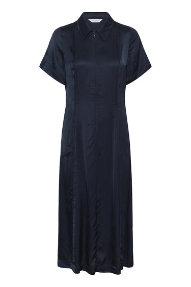 OBS! Fjernlager. Levering kan blive forlænget med 2-3 dage, hvis varen ikke findes i vores butik lige nu.Flot skjortekjole fra Part Two med ½ lange ærmer, skjortekrave i halsen og knaplukning langs fronten. Kjolen har også en smuk kvalitet og en feminin silhuet.