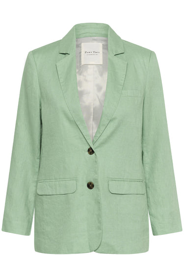OBS! Fjernlager. Levering kan blive forlænget med 2-3 dage, hvis varen ikke findes i vores butik lige nu.Flot enkel jakke fra Part Two med lange ærmer, v-udskæring i halsen og knaplukning i fronten.Jakken har også en let hør kvalitet og fine lommeflapper i siderne.