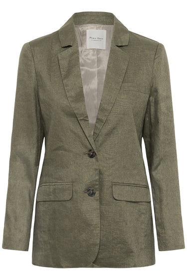 OBS! Fjernlager. Levering kan blive forlænget med 2-3 dage, hvis varen ikke findes i vores butik lige nu.Flot enkel jakke fra Part Two med lange ærmer, v-udskæring i halsen og knaplukning i fronten.Jakken har også en let hør kvalitet og fine lommeflapper i siderne.