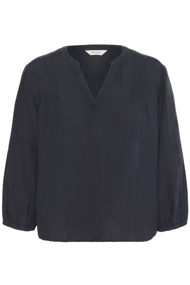 OBS! Fjernlager. Levering kan blive forlænget med 2-3 dage, hvis varen ikke findes i vores butik lige nu.Fin og enkel bluse fra Part Two med ¾ lange ærmer, rund hals med v-udskæring og fine plisseer omkring skulderne.