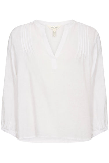 OBS! Fjernlager. Levering kan blive forlænget med 2-3 dage, hvis varen ikke findes i vores butik lige nu.Fin og enkel bluse fra Part Two med ¾ lange ærmer, rund hals med v-udskæring og fine plisseer omkring skulderne.
