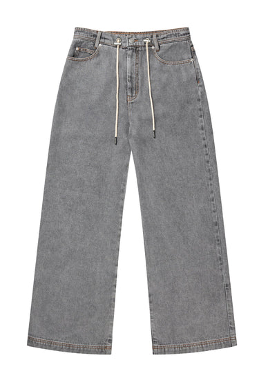 OBS! Fjernlager. Levering kan blive forlænget med 2-3 dage, hvis varen ikke findes i vores butik lige nu.Super flotte jeans fra Munthe med en elegant bindesnor detalje i taljen, vidde i benene og en afslappet silhuet.