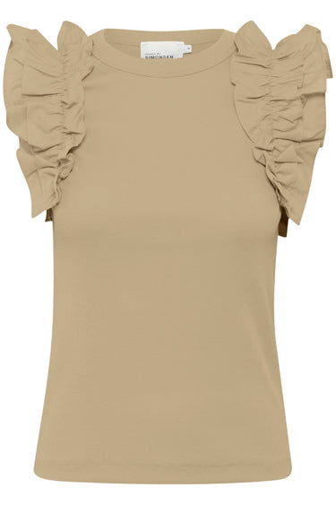 OBS! Fjernlager. Levering kan blive forlænget med 2-3 dage, hvis varen ikke findes i vores butik lige nu.Fin top fra Karen By Simonsen med rund hals og de skønneste flæseærmer.
